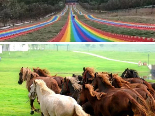 大家騎馬于草原,望著滿目無邊的草場,感受“天蒼蒼,野茫茫,風吹草低見牛羊”的詩意無限;從五彩繽紛的彩虹滑道斜坡上直沖而下,強烈的動感和刺激讓人感受風一般速度的強烈刺激的同時也讓我們充分體驗了人與大自然的和諧。依山玩水,從激流勇進酣暢淋漓沖下去,水花濺起,浪花飛蕩打濕你的戾氣,大家的歡笑聲也在空中久久炸裂。快樂的時光總是短暫的,日落時分,帶著愉快的心情我們踏上了回程的客車。
